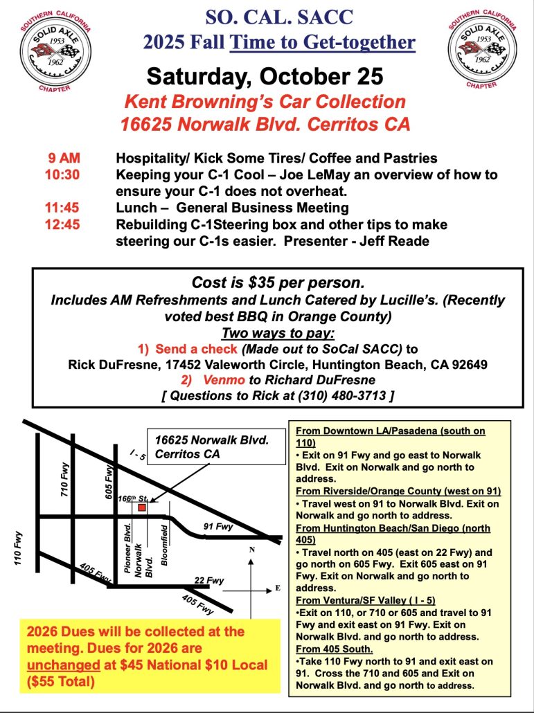 Fall General Meeting and Tech Session scheduled for October 25 2025 at Kent Browning’s Museum